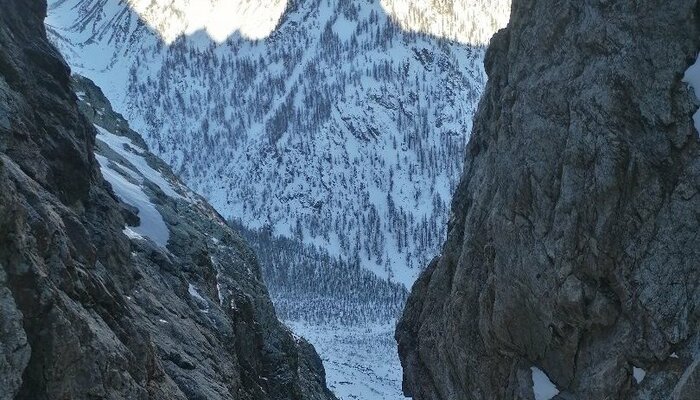 nous vous proposons par exemple une journée vers le col du Lautaret dans la réserve des Combeynots pour gravir des goulottes plus ou moins techniques sur la pointe des clochettes. Accès en ski ou raquette selon le materiel disponible.