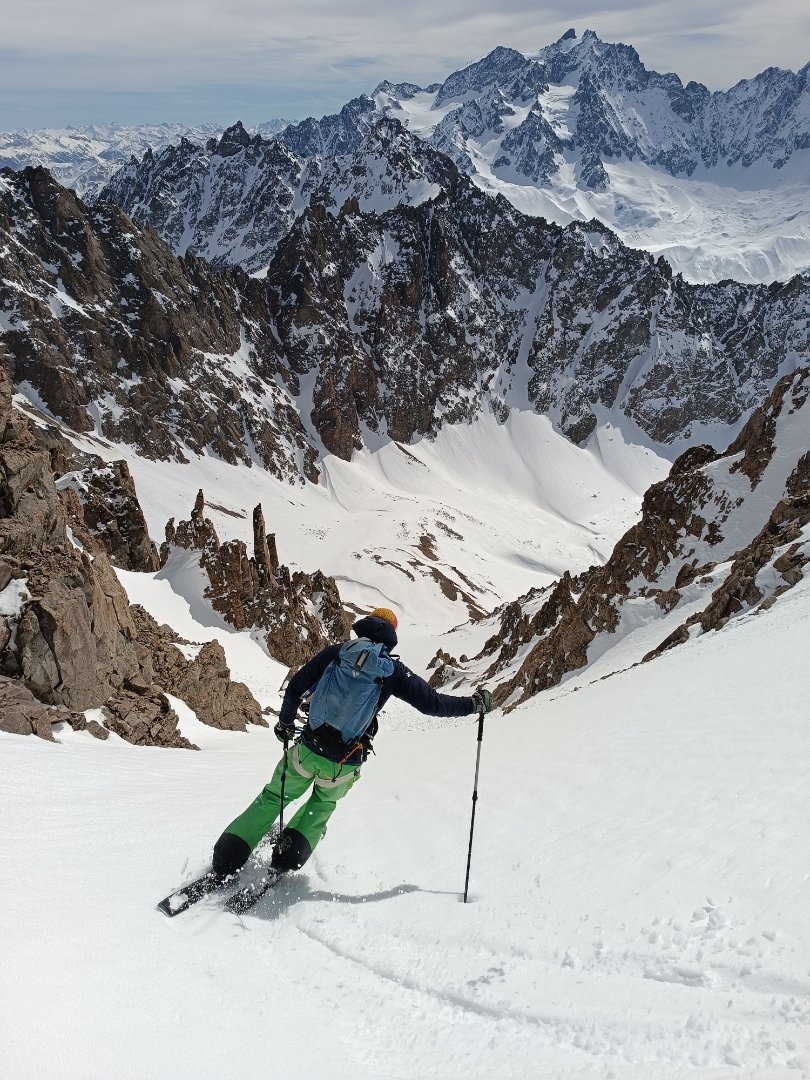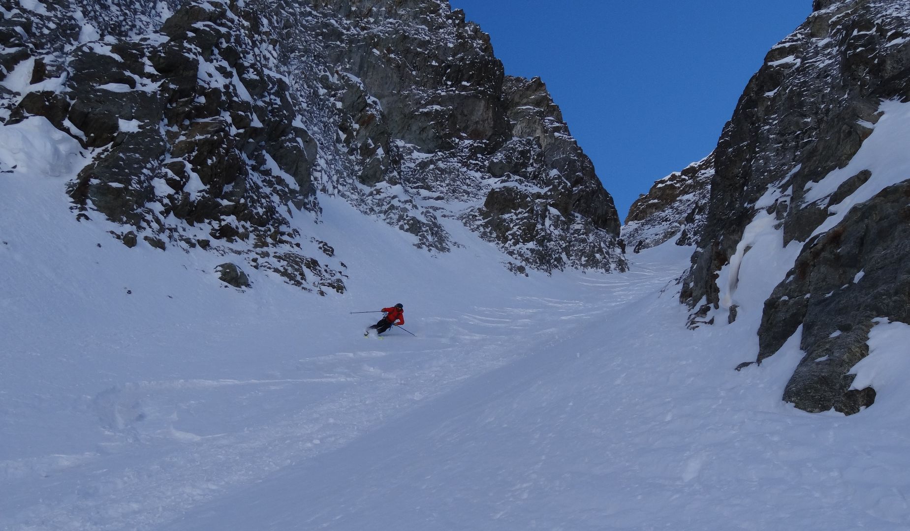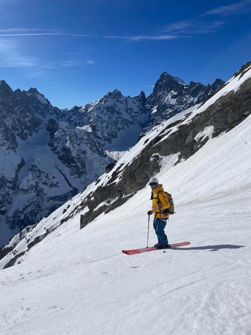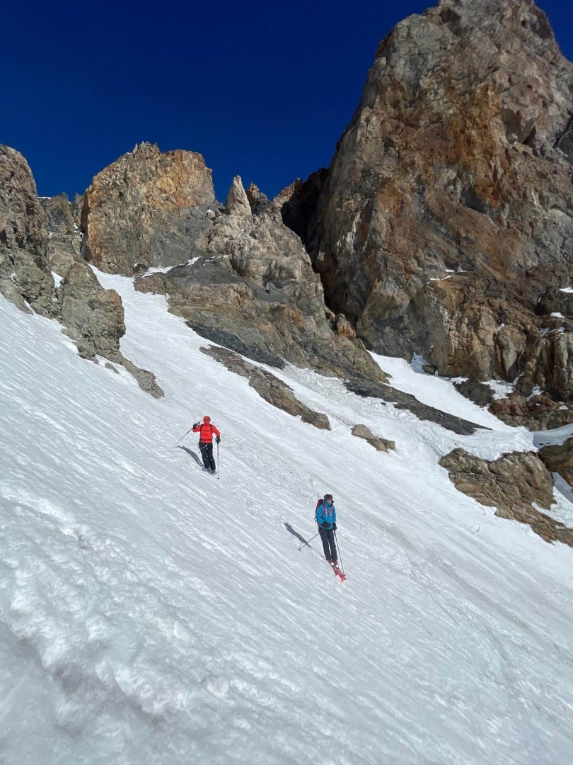 Le ski de couloir dans le massif des Écrins c’est un énorme choix d’itinéraires à peaufiner avec votre guide selon vos objectifs et les conditions nivologiques du moment. Un nombre assez important de couloirs sont faisables à la journée avec différents points de départ. Des couloirs plus éloignés nécessitent une approche avec une nuit en refuge.