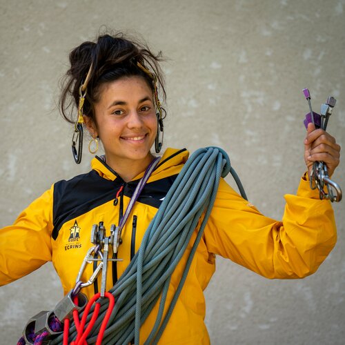 “J’ai soif de continuer à m’enrichir d’expériences pour pouvoir les transmettre sur le terrain. Je jongle avec mes envies de voyager et de m’enraciner dans les Hautes Alpes, où je suis basée depuis peu. Malgré le fait d’être née dans la région la plus plate d’Espagne, je m’aventure dans le monde de la montagne et de l’escalade, que je trouve à la fois très intimidant et attirant. Depuis quelques années je cherche à me perfectionner en escalade traditionnelle et plus aventureuse. L’expérience d’être autonome et de se sentir en sécurité dans le type d’escalade qu’on choisit c’est quelque chose que je veux transmettre dans mes cours. Lors de mes encadrements au sein du bureau je cherche à donner les outils aux élèves pour aller vers cette autonomie, cette envie d’aller vers l’inconnu, d’explorer par nous-mêmes, d’oser et de se sentir libres”.