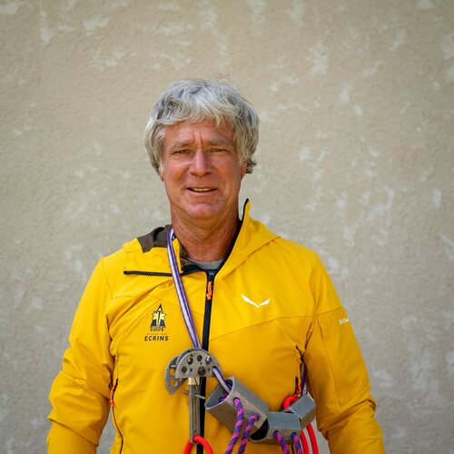 Robert débute le ski très jeune , effectue ses premiers slaloms pendant son enfance avec des skis en bois. Après avoir cassé quelques paires de skis en bois, il pratique le ski de compétition pendant l’adolescence , avec du matériel mieux adapté. Il devient moniteur de ski à 21 ans. Il effectue 4 années d’études à l’Ecole Supérieure de Commerce de Nice , pendant lesquelles il regarde souvent par la fenêtre , en se disant qu’il serait mieux dehors .Il s’entraine pendant ses études pour devenir guide. Une fois ses études réussies, il décide qu’il n’a pas envie de travailler dans un bureau dans une entreprise. Il range son beau diplôme de commerce dans un tiroir. Pendant cette période , il grimpe régulièrement avec les meilleurs grimpeurs .Il explore les falaises du sud , le Verdon , les massifs de l’Oisans et du Mont Blanc, les Dolomites et le Yosemite. Il devient aspirant guide à 26 ans , et guide à 28 ans. Il travaille dans les années 80 comme photographe d’escalade, pour les revues spécialisées et grand public. Ses anciennes photos d’escalade ont actuellement un bon succès , et sont souvent publiées dans des livres , des revues, des films et des expositions de photos qui traitent de l’histoire de l’escalade. Il fait partie des retraités qui continuent de travailler, il y en a quelques spécimens dans notre bureau. On ne les appelle pas les « Vieux Guides ». Ils font partie d’une catégorie que nous les appelons les « Guides Expérimentés » : ce sont ceux qui sont jeunes depuis plus longtemps que les autres . Robert travaille aussi comme skipper professionnel sur des voiliers de croisière. Il affectionne tout particulièrement le ski sous toutes ses formes, le ski freeride , la voile , l’escalade en falaise , et les falaises du sud. Son challenge actuel n’est plus de progresser en escalade , mais d’arrêter de régresser :)