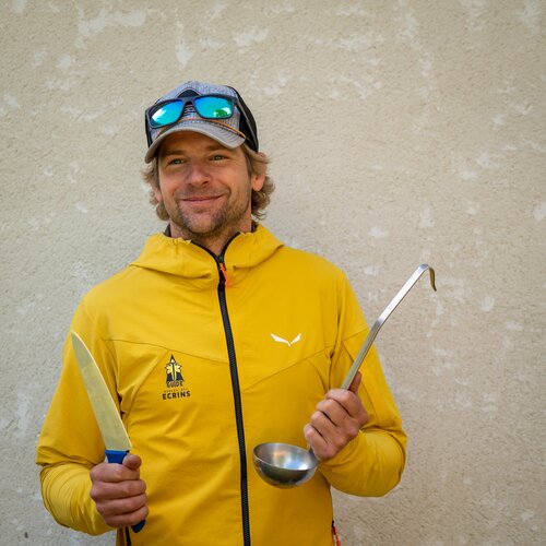 Romain est le couteau suisse du bureau des guides : chef cuisinier bilingue, garagiste spécialisé en aménagement de fourgons, négociant en matériaux de construction, artisan en rénovation, philosophe phénoménologue du quotidien.