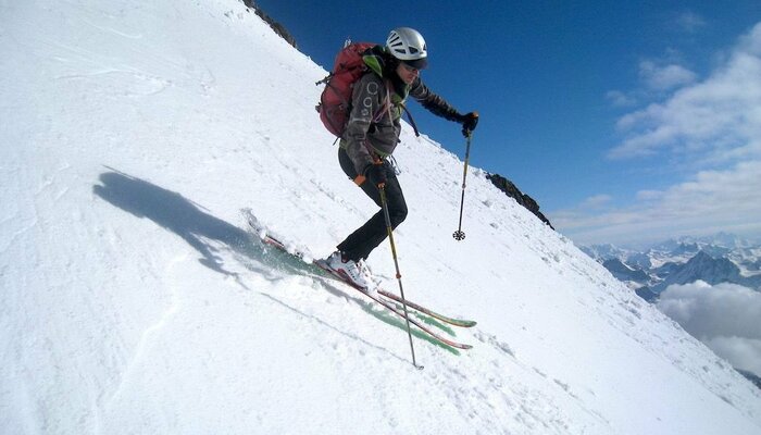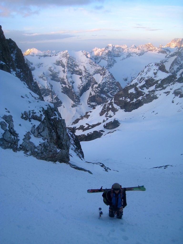 7 mai 2018, après 10 années à arpenter ensemble une multitude de massifs alpins et de couloirs (c’est le ski de couloir qu’il préfère Alain, neige lisse, pas d’arbres, pas de bosses.) on décide de clôturer cette saison par le Pelvoux et sa traversée.