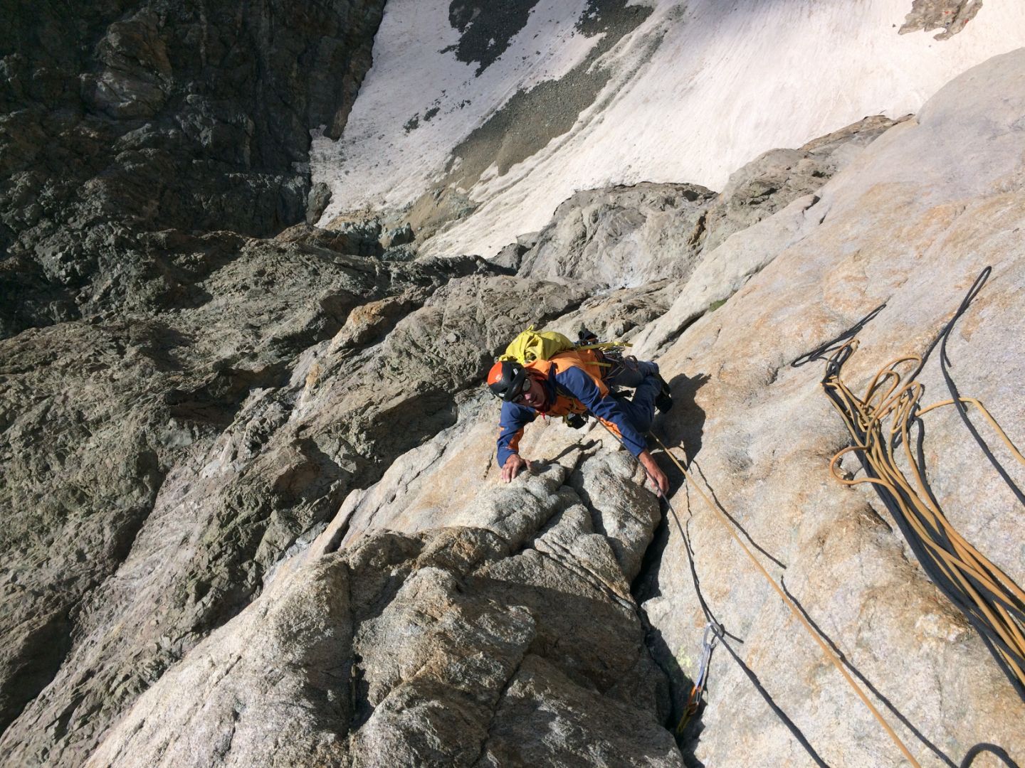 Perle des Écrins, du haut de ses 370 mètres la face sud-ouest de Sialouze propose une dizaine de voies, à l’escalade enthousiasmante, ouvertes entre 1959 et 2009, sur un rocher toujours beau et incroyablement varié on retrouve un large éventail de ce que la grimpe peut offrir : des dalles à friction, des fissures plus ou moins larges, des cheminées à ramoner, des dévers intenses et pléthore de surprises à découvrir. Parmi celles-ci, nombreuses furent ouvertes dans les années quatre-vingt, grâce à l’inextinguible ardeur de valeureux aventuriers corrélé à l’essor des points « inarrachables », qui finirent par vieillir jusqu’à menacer de s’arracher. Alertés par Jean Michel Cambon, ouvreur pionnier des bientôt cinq dernières décennies, qu’à mesure que l’âge oxyde les points originels, la nécessité de les changer se fait plus pressante, le rééquipement de deux voies parmi les plus parcourues – ventre à terre et jour de colère - fut enfin réalisé.