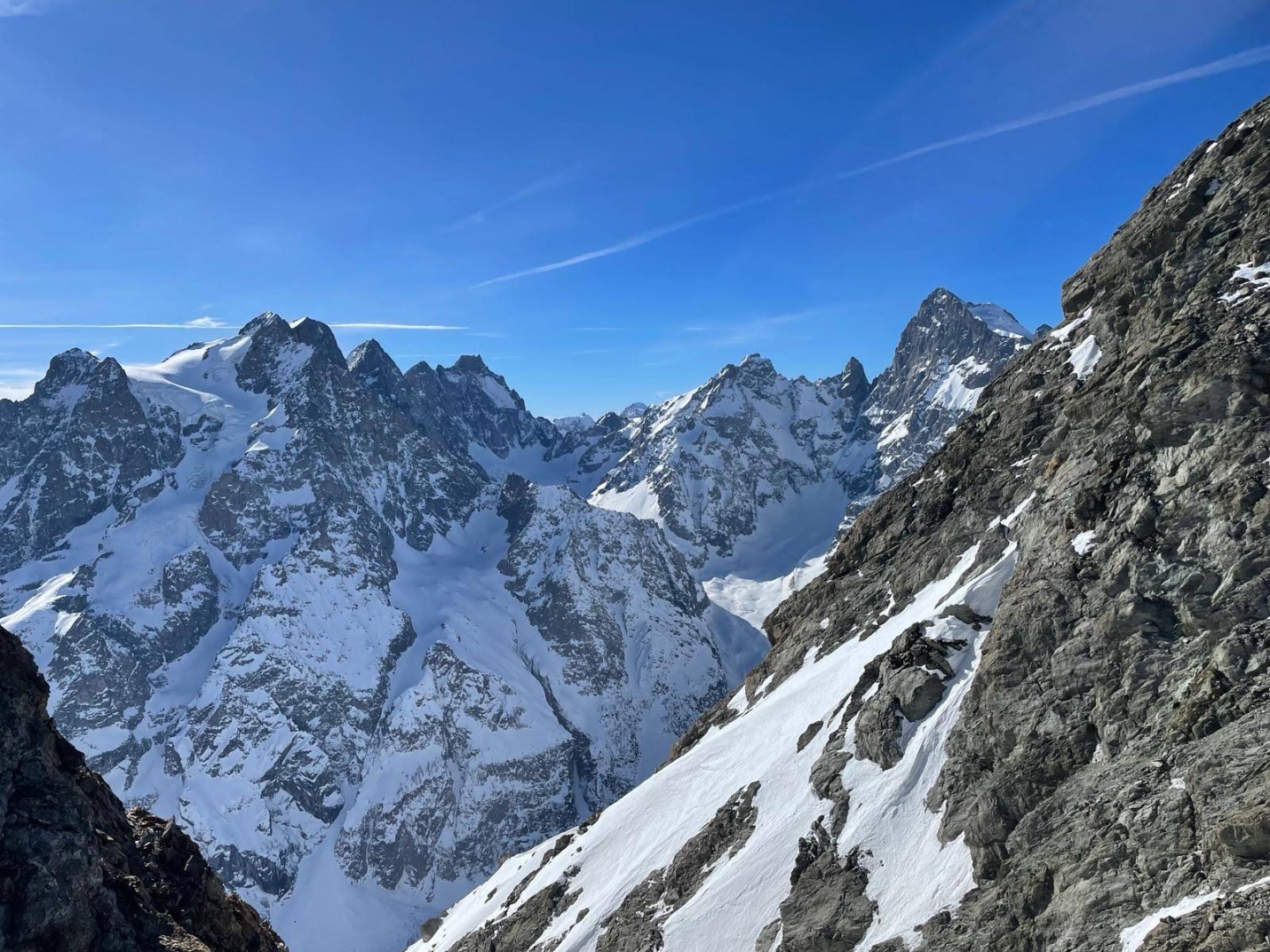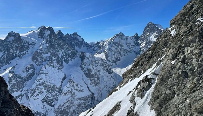 Mes 2 collègues en rêvaient depuis quelques temps sans vraiment s’imaginer qu’ils en avaient le niveau physique et technique. Qualités indispensables pour effectuer cette magnifique immersion dans les Ecrins, skis aux pieds.